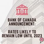 The recent Bank of Canada announcement that their overnight lending rate was remaining unchanged at 0.25% was less of an announcement than the Bank of Canada Governor Tiff Macklem stating that ‘interest rates are very low and they are going to be there for a long time’.